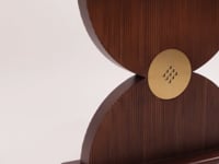 A part of our newly launched furniture collection, India Modern, the Hourglass console is a fine blend of timelessness and contemporary silhouettes. Crafted using pure Indian Teak wood, the console is designed in the shape of an hourglass with a Carrara white table top. At the center of the hourglass structure, a golden emblem that lends the walnut finish of the accent a timeless character.